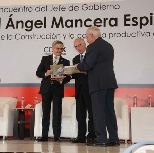 México, D.F.- Tras recibir el reconocimiento del sector de la construcción por el trabajo coordinado entre Gobierno e iniciativa privada para generar crecimiento y desarrollo en la Ciudad de México, el Jefe de Gobierno, Miguel Ángel Mancera Espinosa, aseguró que la sinergia entre dicha industria y la administración local, ha dado lugar a un avance sostenido que mejora las condiciones de vida de los habitantes, a través de la inversión estratégica en infraestructura hidráulica, transporte público y desarrollo inmobiliario.