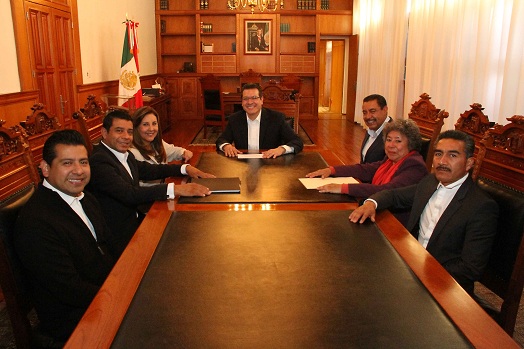 Tlaxcala, Tlax.- El Gobernador Marco Mena se reunió con una comisión de cortesía del Congreso Local que le informó sobre la instalación de la LXII Legislatura. En este encuentro estuvieron las diputadas María Guadalupe Sánchez Santiago y Floria María Hernández Hernández: los diputados Delfino Suárez Piedras y Enrique Padilla Sánchez; así como el secretario del parlamento del Poder Legislativo, Carlos Augusti Pérez Hernández y el secretario de gobierno Florentino Gómez Ordoñez.