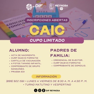 El Gobierno de Reynosa que encabeza el alcalde, Carlos Peña Ortiz, a través de CAIC del DIF Municipal, cuenta con programas educativos que fortalecen el aprendizaje desde los primeros años, que contribuye al bienestar de las niñas y los niños.