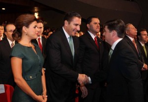 Monterrey, Nuevo León.- El Gobernador y presidente de la Conferencia Nacional de Gobernadores (Conago), Rafael Moreno Valle asistió al cuarto informe de labores de su homólogo, Rodrigo Medina de la Cruz.