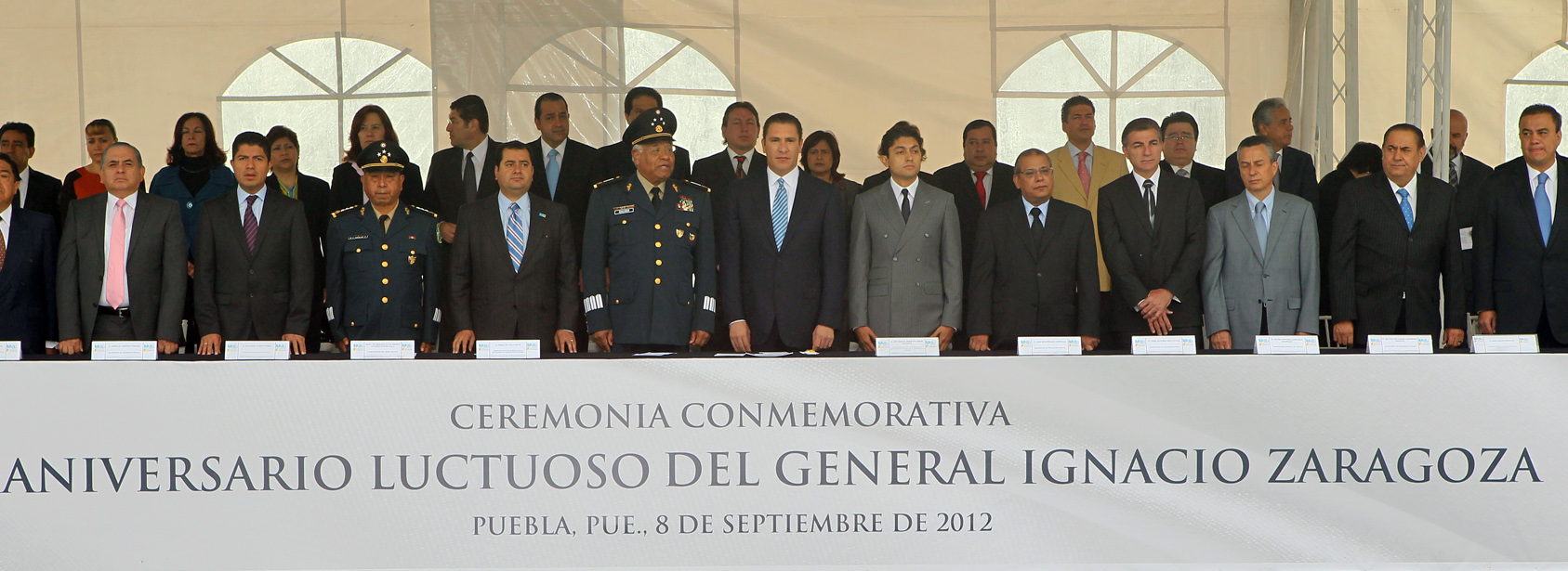 El Gobernador Rafael Moreno Valle, en compañía del General Secretario de la Defensa Nacional, Guillermo Galván Galván, y el subsecretario de Gobernación y representante del Presidente de la República, Obdulio Ávila, encabezó la ceremonia conmemorativa del sesquicentenario luctuoso del General Ignacio Zaragoza.