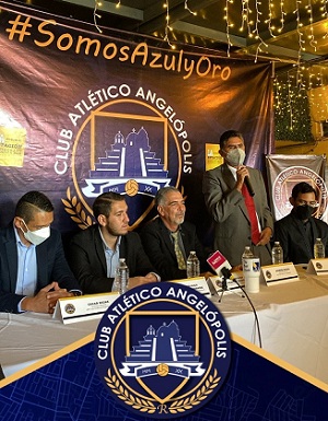 Pedro Cholula, Puebla.- El equipo Atlético Angelópolis que representará a la entidad poblana en la Liga Premier serie “B”, fue presentado ante la sociedad y los medios de comunicación, en el mes de agosto incursionará en el torneo avalado por la Federación Mexicana de Fútbol, su sede será el campo 1 de la Unidad Deportiva Mario Vázquez Raña y jugará como local los viernes a las 12:00 horas.
