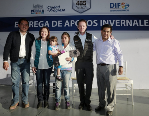 Puebla, Pue.- El Alcalde Luis Banck, acompañado de la Presidenta del Patronato del Sistema Municipal DIF, Susana Angulo de Banck, reiteró su compromiso con las familias poblanas, al entregar apoyos para la temporada invernal.