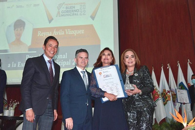 “Agradezco en primer término el honor con el que me distinguen este día al concederme el premio a la excelencia municipal, reconocimiento que me honra y compromete como servidora pública, como mujer y como mexicana”, expresó.