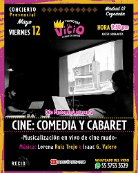 Una nueva experiencia llega este mes al teatro bar El Vicio. El Dúo Pantomima, integrado por Lorena Ruiz Trejo, en las percusiones; e Isaac G. Valero, en el piano, presentan “CINE: COMEDIA Y CABARET”, a través del cual nos invitan a disfrutar y transportarnos a otra época, con la musicalización en vivo de cine mudo, formando así un espectáculo muy singular de cine-concierto.