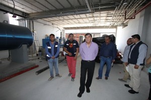 Durante la visita, González Zarur estuvo acompañado por el secretario de Obras, Desarrollo Urbano y Vivienda (Secoduvi), Roberto Romano Montealegre, quien detalló que actualmente los trabajos se centran en la etapa de acabados, que consta de la colocación de cancelería, plafones, pastas en muros y loseta en pisos en cada uno de los cinco edificios que conforman este hospital.