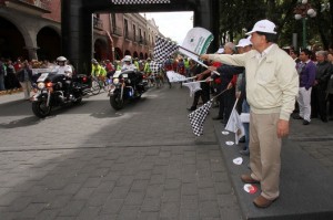 Tlaxcala, Tlax.- El Gobernador del Estado, Mariano González Zarur, dio el banderazo de salida de la “Vuelta Ciclista Tlaxcala 2016”, cuya primera etapa arrancó este jueves y concluirá el próximo domingo 6 de noviembre, en la cual participan 216 ciclistas nacionales y extranjeros, y contempla un recorrido total de 350 kilómetros por 12 municipios de la entidad.
