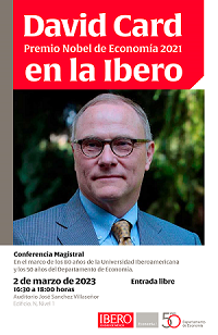 | El Departamento de Economía organiza la conferencia magistral que brindará el Dr. Card en la Universidad Iberoamericana Ciudad de México. |