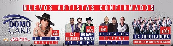 El DOMO CARE de la EXPO Feria Guadalupe da a conocer las fechas que se agregan al elenco de esta temporada 2018 las cuales son: