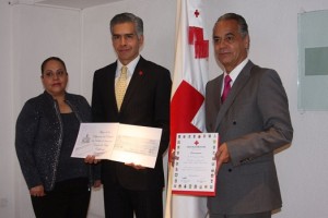 Puebla, Pue.- El Presidente de la Junta de Gobierno y Coordinación Política, Víctor Manuel Giorgana Jiménez, y la Presidenta de la Mesa Directiva de la Comisión Permanente y de la Comisión de Protección Civil, María Sara Chilaca Martínez, entregaron a nombre de los diputados de la LIX Legislatura un cheque por 100 mil pesos a la Cruz Roja Mexicana.