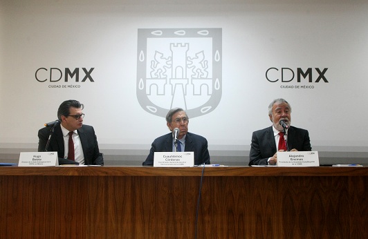 Y funcionarios del Gobierno de la Ciudad de México como Porfirio Muñoz Ledo; el consejero Jurídico y de Servicios Legales (CEJUR), Manuel Granados Covarrubias, y el coordinador general de Asuntos Internacionales, Cuauhtémoc Cárdenas.