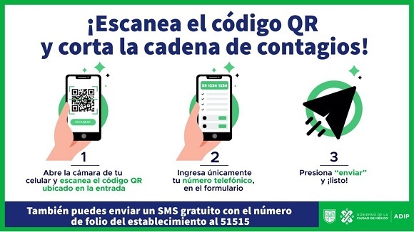 Los usuarios podrán escanear el Código QR con su teléfono celular, o bien enviar un SMS gratuito con el folio que aparece junto al código, al número 51515; en caso de haber estado en el mismo sitio que alguien positivo a Covid-19, la persona será notificada vía mensaje SMS, para tomar las medidas necesarias y romper la cadena de contagios de Covid-19.
