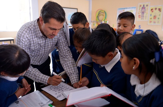 Acuamanala de Miguel Hidalgo, Tlaxcala, 12 de mayo de 2017.- En la Escuela Primaria “Xicohténcatl”, donde grabó aspectos para la difusión de su 5º Informe de Gobierno, el Presidente de la República, Enrique Peña Nieto, convivió con habitantes de este municipio.