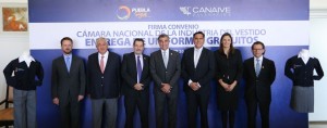 Como parte de estas acciones, el mandatario firmó un convenio de colaboración con el Presidente de la Cámara Nacional de la Industria del Vestido (Canaive), Samuel Gershevich, para la elaboración de las prendas.