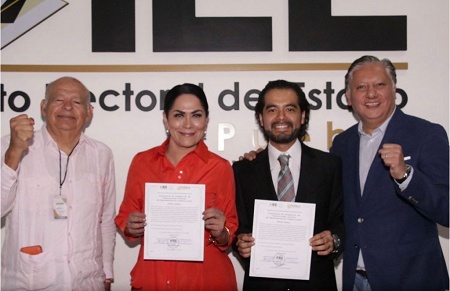 Puebla, Pue. Fedrha Suriano y Marco Antonio de los Santos, se hicieron presentes en el Instituto Electoral del Estado para firmar las constancias de asignación de disputaciones locales de representación proporcional por Movimiento Ciudadano, entregadas por la presidenta del instituto, Blanca Yassahara Cruz.