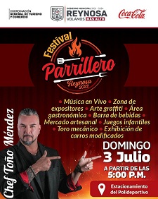 Reynosa, Tamaulipas.- Se invita a los parrilleros a participar en el festival, que tendrá dentro del jurado calificador al Chef Toño Méndez.