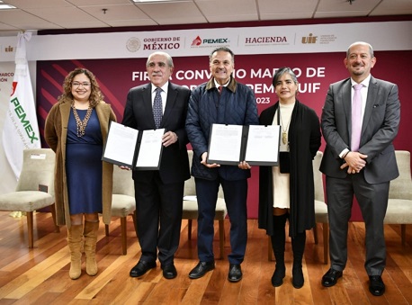 Ciudad de México. -  El director general de Pemex, Octavio Romero Oropeza y el titular de la Unidad de Inteligencia Financiera (UIF), Pablo Gómez, firmaron un Convenio Marco de Colaboración con el objetivo de coordinar las acciones necesarias, en el ámbito de su competencia, en la lucha contra la corrupción, así como para fortalecer y adoptar medidas en materia de prevención y combate de los delitos de operaciones con recursos de procedencia ilícita y