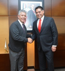 Ciudad de México.- El Gobernador duranguense Jorge Herrera Caldera se reunió con el titular del INFONAVIT, David Penchyna, a quien le gestionó más créditos de vivienda a trabajadores del gobierno del estado. El Mandatario estatal agradeció la apertura del director general al mismo tiempo que de manera respetuosa le solicitó su apoyo para que el otorgamiento de créditos a trabajadores del estado continúe siendo una realidad.