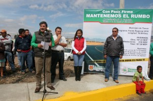 Acompañado por la Alcaldesa de Tlaxco, Rosalinda Muñoz Sánchez, y del Presidente de Comunidad, Jesús Ortega Quesada, el mandatario tlaxcalteca cortó el listón inaugural de esta obra, que forma parte del programa carretero de este año y en la que se aplicaron 178 millones de pesos.