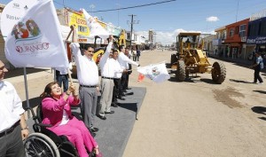 Guadalupe Victoria, Dgo.- En el marco de la presentación de avances y resultados de tres años de gobierno, el Gobernador Jorge Herrera Caldera dio el banderazo al programa de rehabilitación de pavimentación de calles y rescate de espacios públicos que estaban deteriorados y abandonados.