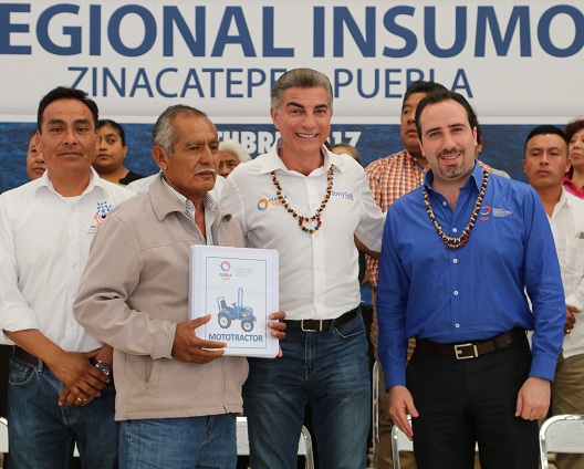 Zinacatepec, Puebla.- El Gobernador Tony Gali entregó apoyos por más de 10 millones de pesos del programa Insumos a Tiempo, en beneficio de 940 productores de 12 municipios de la región.