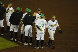Los verdes volvieron a timbrar carrera en el séptimo rollo, primero Jon Del Campo impulsó su segunda carrera de la noche con sencillo al izquierdo; la octava carrera de los locales llegó gracias a un error de Alejandro Rivero.