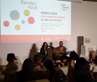 La charla fue en el Auditorio en el Centre Pompidou Málaga en el marcó del ciclo Rendez-Vous. Los asistentes disfrutaron de un showcase y de una charla abierta de Mari, quién expresó que siempre ha sido muy tímida y que sus inicios fueron difíciles al encontrarse con tantas miradas en los escenarios.