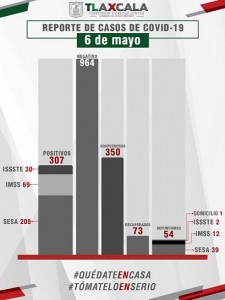 El estado registra, hasta este momento, 964 casos negativos, 350 se encuentran en espera de resultado y 307 bajo vigilancia epidemiológica.