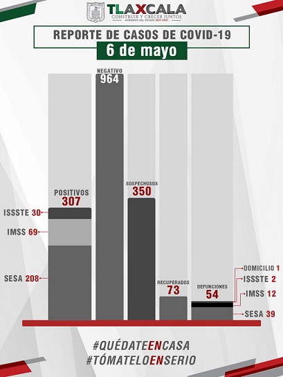 De esta manera, la entidad registra 307 contagios, 73 personas recuperadas de la enfermedad y 54 fallecimientos.