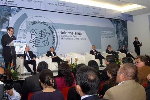 Al asistir al Informe Anual de Actividades 2012 de González Placencia al frente de la Comisión de Derechos Humanos del Distrito Federal (CDHDF), el Jefe de Gobierno sostuvo que para encontrar una sociedad igualitaria es necesario escuchar “hoy hay una relación que con el respeto muy claro de los diferentes ámbitos competenciales nos permite construir a favor de la ciudadanía”.