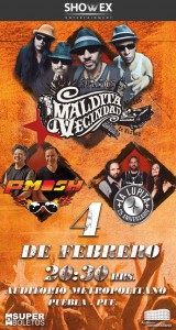 El mes de Febrero del año 2017 está lleno de sorpresas, una de las más especiales es la visita de tres bandas emblemáticas del Rock Latinoamericano y Nacional, La Maldita Vecindad, La Lupita y los Regios de Plastilina Mosh harán vivir a los Poblanos una noche espectacular el día 4 de Febrero a las 20:30 horas.