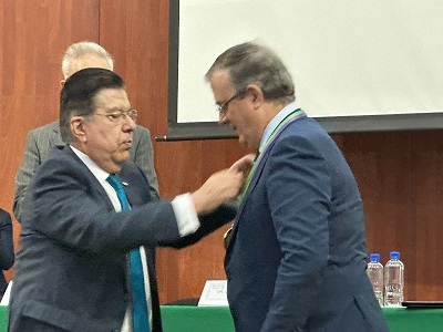 Este día, el secretario de Relaciones Exteriores Marcelo Ebrard Casaubón, recibió un Doctorado Honoris Causa otorgado por el Instituto Nacional de Administración Pública (INAP), A. C.