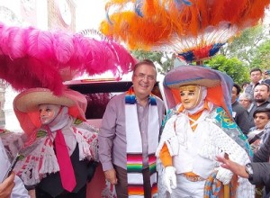 En su encuentro con la gente de la capital, se hizo acompañar de huehues y cientos de personas que lo arroparon y le dieron una cordial bienvenida. Ahí mismo, conoció la historia de Tlaxcala, la cual está descrita en letras de madera colocadas en el centro de la ciudad.