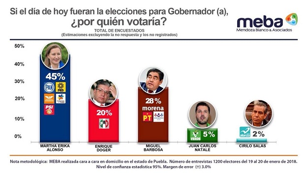 Cabe destacar que Mendoza Blanco y Asociados, publicó los resultados de esta encuesta a través de su portal de internet: http://mendozablanco.com.mx/wp-content/uploads/2018/01/Reporte-Gra%CC%81fico-Gobernador-Puebla-Enero-CEN-1.pdf
