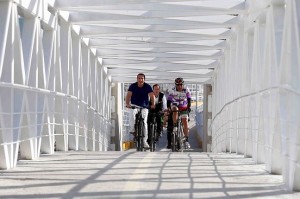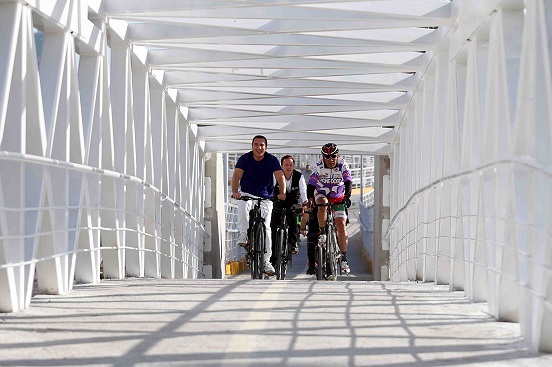 En el paseo ciclista y el recorrido por los nuevos espacios estuvo acompañado por los secretarios de Turismo, Roberto Trauwitz, y de Infraestructura y Transportes, Diego Corona, así como del alcalde Luis Banck.