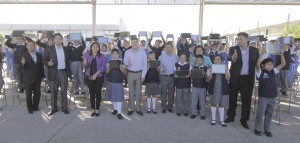San Andrés Cholula.- El Presidente Municipal de San Andrés Cholula, Leoncio Paisano Arias y el Encargado del Despacho de la Secretaría General de Gobierno, Jorge Cruz Bermúdez, entregaron 1612 tabletas en total a alumnos de quinto grado de primaria como parte del Programa Inclusión y Alfabetización Digital 2015.