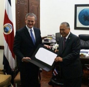 El Ministro de Relaciones Exteriores y de Culto de la Hermana República de Costa Rica, Manuel González Sánz, junto con el nuevo Embajador de México, Melquiades Morales Flores.