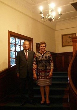 El Embajador de México en Costa Rica, Melquiades Morales Flores, lo vemos en la gráfica con su esposa la señora Socorro Alfaro de Morales, en la residencia oficial de la embajada.