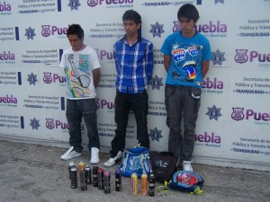 Al encontrar a los ahora detenidos, señalaron que los estaban confundiendo pero al realizar una revisión de rutina, en una mochila les encontraron botes con pintura en aerosol así como diversos aerógrafos.