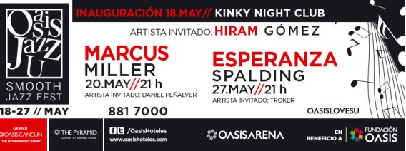 Por sexto año consecutivo Oasis Hotels & Resorts y Fundación Oasis A.C., presentan su festival Oasis Jazz U los próximos 18, 20 y 27 de Mayo de 2017 en Cancún, Quintana Roo. La cita, que poco a poco se consolida en el circuito del jazz del país, será en el Kinky Night Club y la Oasis Arena del Hotel Grand Oasis.