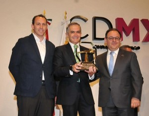 Ciudad de México.- Por el impulso y proyección que ha dado durante 3 años consecutivos a la realización de Fórmula 1 Gran Premio de México, el Jefe de Gobierno, Miguel Ángel Mancera Espinosa, recibió un reconocimiento por parte de Federico González Compeán, director general de este evento.