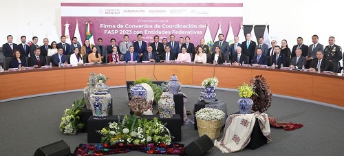 Puebla, Pue. - Para garantizar la efectividad de la estrategia nacional, así como fortalecer el trabajo interinstitucional en materia de seguridad, el gobierno federal y 11 entidades, incluida Puebla, llevaron a cabo las firmas de convenios de Colaboración en Materia de Seguridad con los Estados Limítrofes y de Coordinación del Fondo de Aportaciones para la Seguridad Pública (FASP) 2023.