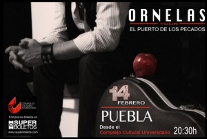 Puebla, Pue.- “El Puerto de los pecados” es el nombre del nuevo tour que inicia el cantante y compositor mexicano Raúl Ornelas, quien se presentará en la ciudad de Puebla el próximo 14 de Febrero en el Teatro del Complejo Cultural Universitario, para vivir un Día de San Valentín lleno de romanticismo. Durante el 2014 recorrió ciudades como Monterrey, Oaxaca, León, Tlaxcala, Torreón, entre otras.