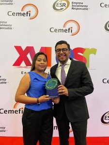 Por parte del equipo de trabajo Ambiental, Social y Gobernanza de Granjas Carroll acudieron a recibir el reconocimiento Idalia Hernández García y Carlos Arias Ramírez.