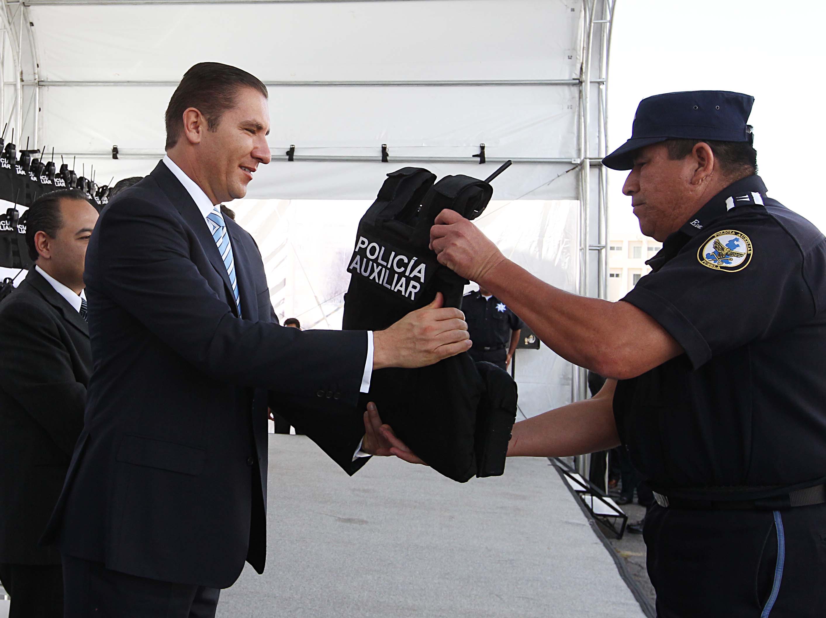 Moreno Valle entregó a esta corporación –integrada por 3 mil elementos- 20 patrullas, 500 chalecos antibalas, 500 radios portátiles y 300 celox (para primeros auxilios en caso de hemorragias).