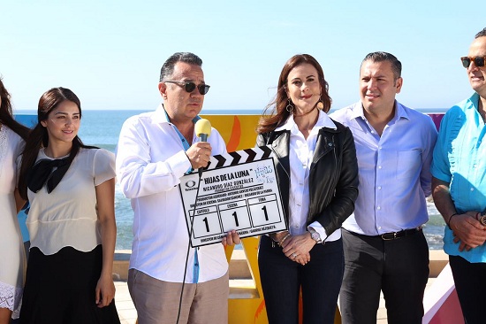 Mazatlán., Sinaloa.-  La Presidenta del Sistema DIF Sinaloa Rosy Fuentes de Ordaz y el productor Nicandro Díaz fueron los encargados de dar claquetazo a la primera escena de la telenovela “Hijas de la luna” la cual se graba  en el puerto de Mazatlán.