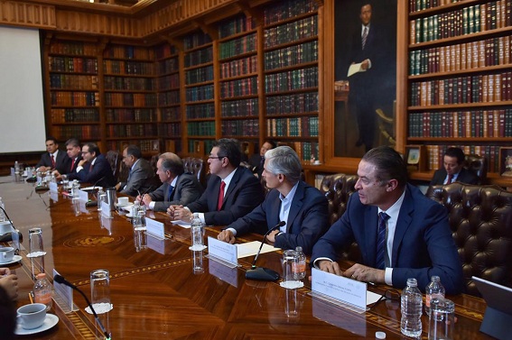 El Gobernador Marco Mena se reunió este martes con el Secretario de Gobernación, Alfonso Navarrete Prida, así como con 11 mandatarios más del Partido Revolucionario Institucional, para tratar asuntos de gobernabilidad y seguridad en las entidades.