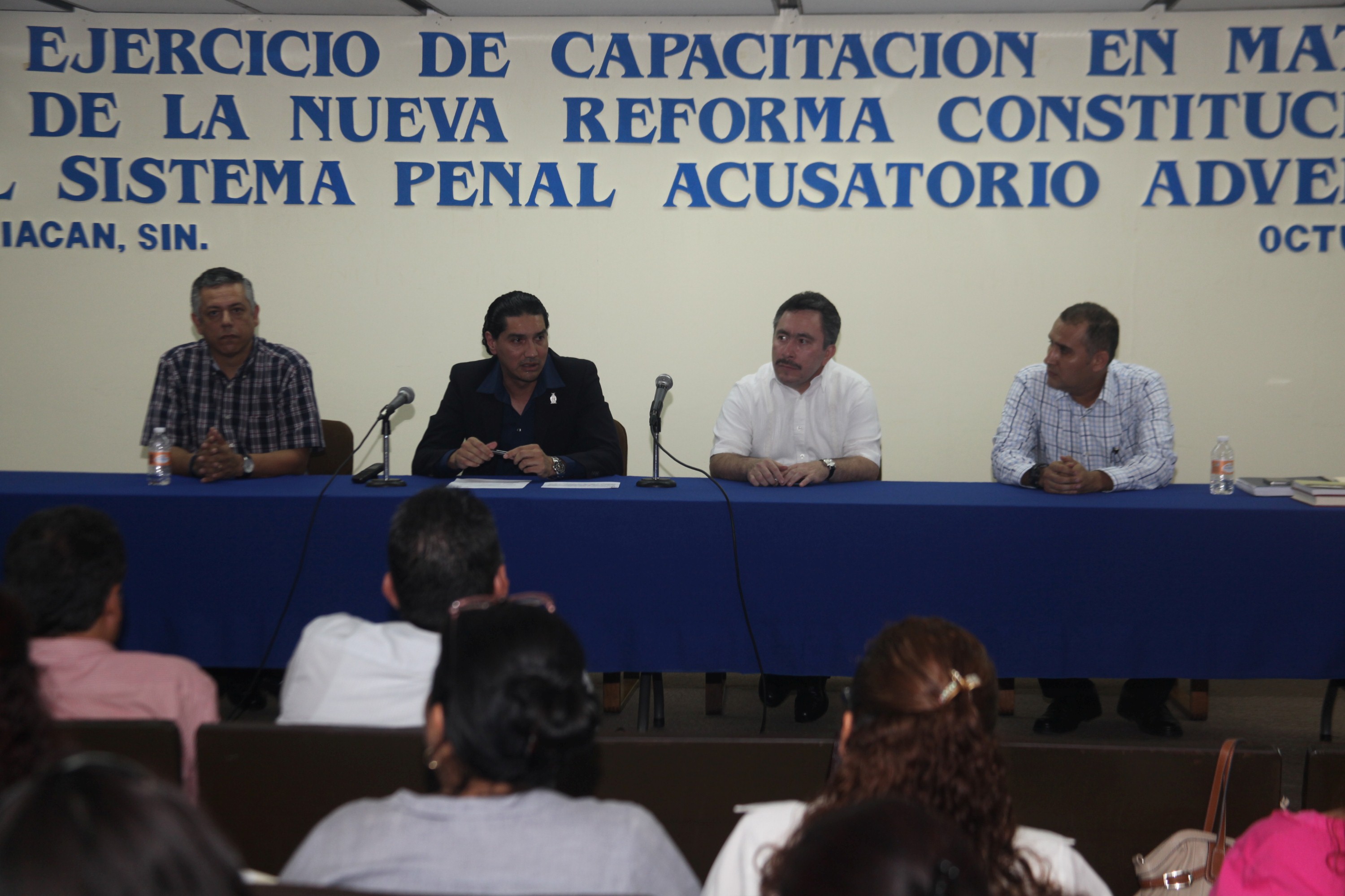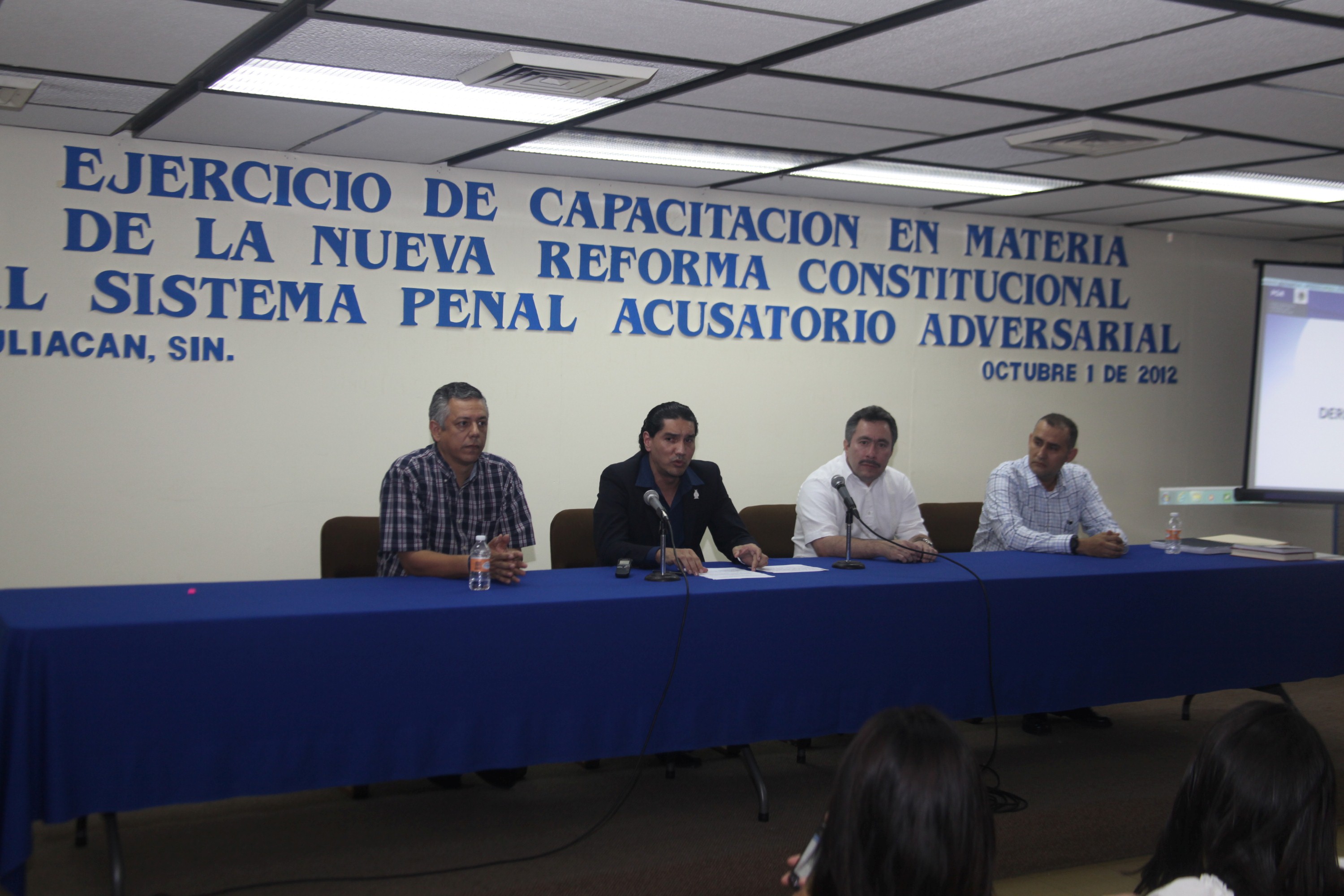 Acompañado del Presidente de la Comisión Estatal de los Derechos Humanos, Juan José Ríos Estavillo, así como un representante de la Procuraduría General de la República y el ponente Alonso Hernández Contreras, Agente del Ministerio Pública Federal, Villasana Falcón explicó la importancia de la capacitación ante los cambios hechos a la Carta Magna y lo determinante de adquirir los nuevos conocimientos en materia legal que serán aplicables dentro de los juicios orales.