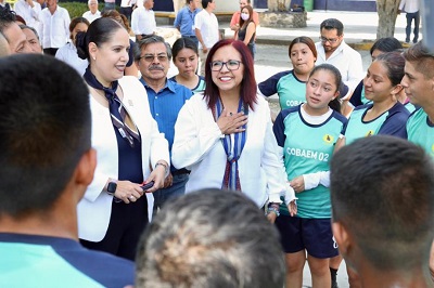 Además, visitó el Centro de Bachilleres del Estado de Morelos (Cobaem), plantel 2, en el municipio de Jiutepec, donde entabló diálogo cordial con la comunidad escolar, conoció sus necesidades y propuestas para fomentar la educación de calidad.