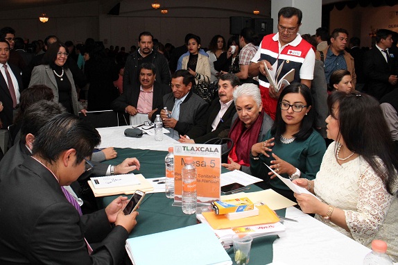 Ante líderes sindicales del sector, diputados, presidentes municipales y académicos que se dieron cita en el Salón Arlequín del Hotel del Ángel en Apizaco, Marco Mena reiteró que el Gobierno, los trabajadores del sector salud y los ciudadanos tienen que unir esfuerzos para mejorar en este rubro a nivel estatal.